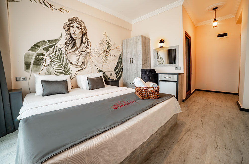 Deluxe Oda, konfor ve lüksü bir arada sunan özellikleri ile misafirlerimizin tatillerini unutulmaz kılmayı amaçlıyor. Bahçe ve deniz manzarası, huzur verici atmosferi ve özel hizmetleriyle size evinizin rahatlığını yaşatacak. Tekhan Kumkuyu Luxury Hotel'de, tatilinizi en iyi şekilde geçirmeniz için her detay düşünülmüştür.