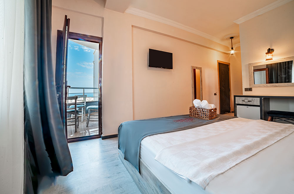 Junior Oda, konfor ve lüksü bir arada sunan özellikleri ile misafirlerimizin tatillerini unutulmaz kılmayı amaçlıyor. En üst katta yer alan bu oda, huzur verici deniz manzarası ve özel hizmetleriyle size evinizin rahatlığını yaşatacak. Tek Han Kumkuyu Luxury Hotel'de, tatilinizi en iyi şekilde geçirmeniz için her detay düşünülmüştür.