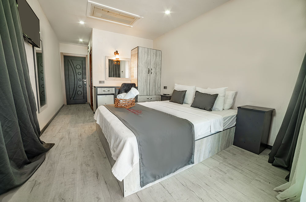 Yatak Düzeni: 1 adet en büyük boy (King) yatak ile ferah bir uyku alanı.